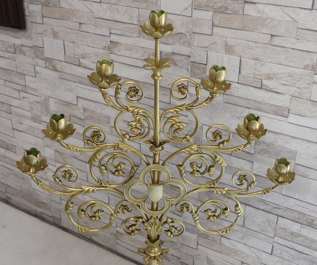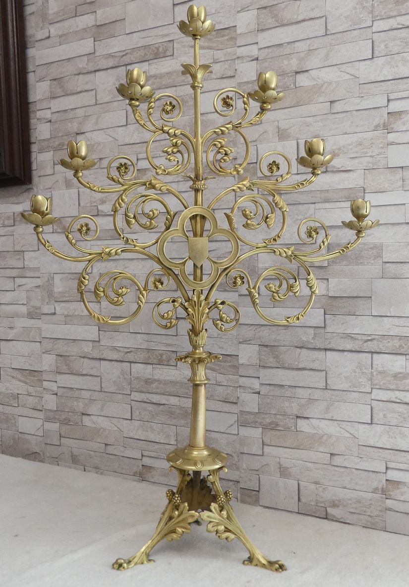 Galeria Antika > Produkty > Dewocjonalia > Lichtarze > Świecznik ołtarzowy mosiądz 7 świec NEOGOTYK 82cm